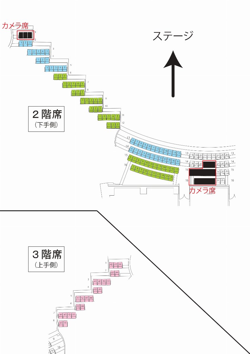 座席をご自由にお選びいただけますので、会場座席図をご確認の上、購入画面にお進みください。(トップ画像下の座席図に、こちらで販売する座席をカラーで表していますので、ご参照ください。)
