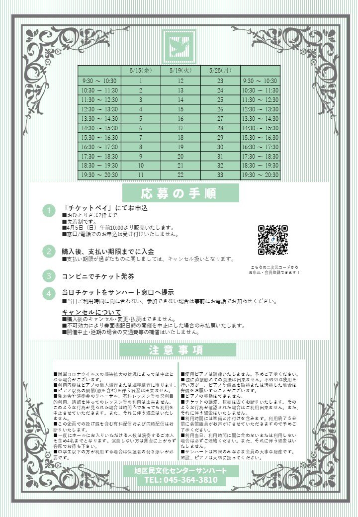 ◆サンハートは市民のみなさま全員の大事な財産です。施設、ピアノは大切に扱ってください。